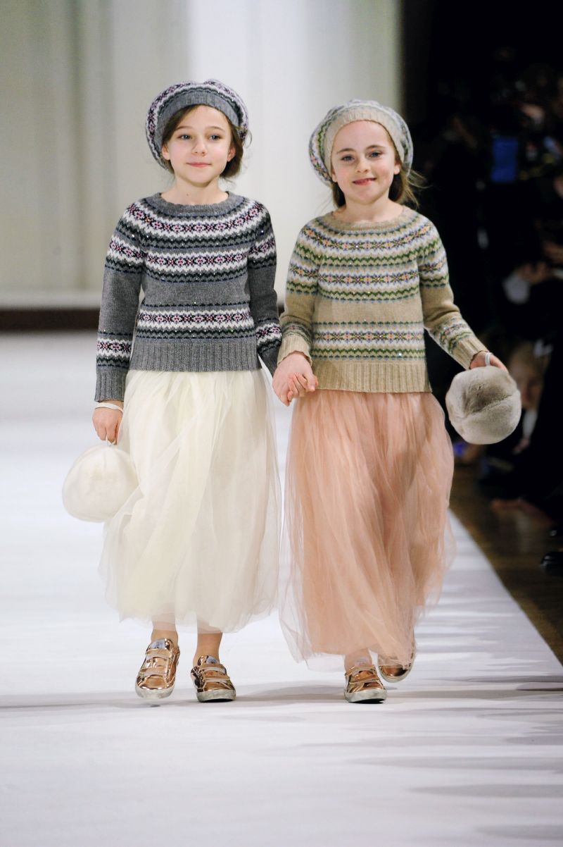 صُمّمت الياقات من ريش النعام أو فرو الأرنب، واتّخذت حقائب اليد البرّاقة شكل قلب. تطغى الأقمشة النفيسة على التشكيلة، كالمخمل والتول والكشمير والفرو والأنغورا وتزدان بشرائط Lurex وأزهار حريرية، وكأنّها أغنية رائعة اللحن من تأليف مشاغل Bonpoint.