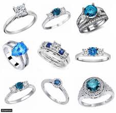 لم تعد تقتصر المجوهرات زرقاء اللون على المجوهرات العادية فقط، أصبح يمكن ان تكون الخواتم الزرقاء هي خواتم خطوبة او زواج، فلم يعد يجب ان يكون خاتم الزواج ابيض كسابق العهد. يمكنك ان تختاري من مجموعات خواتم الخطوبة او الزواج خواتم ذات أحجار زرقاء لتشعري بالانفراد والتمييز.