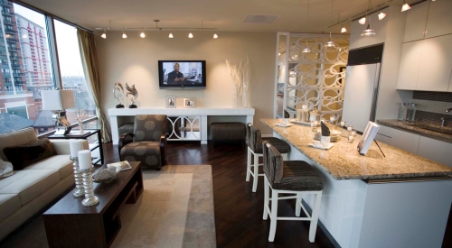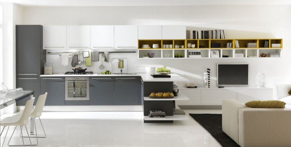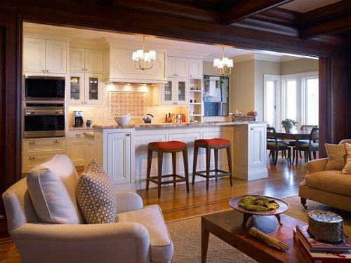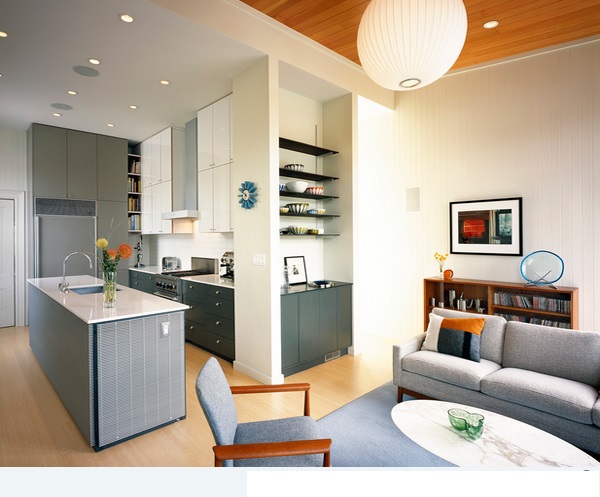 ديكورات مطابخ صغيرة مفتوحة على غرفة الجلوس