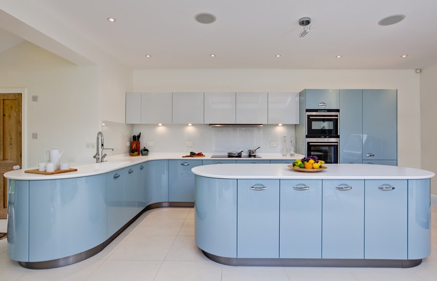 ومن ناحية اخري تتناسب ديكورات المطابخ ذات اللون الازرق مع جميع المساحات، لا يوجد الكثيرين من يخاروا اللون الأزرق لديكورات مطبخهم، ولكن اللون الازرق لون فريد من نوعه فهو من الألوان الفاتحة للشهية، ومزيلة للاكتئاب، يمكنك من خلالها ان تجعلي مطبخك أكثر بهجة و أناقة.