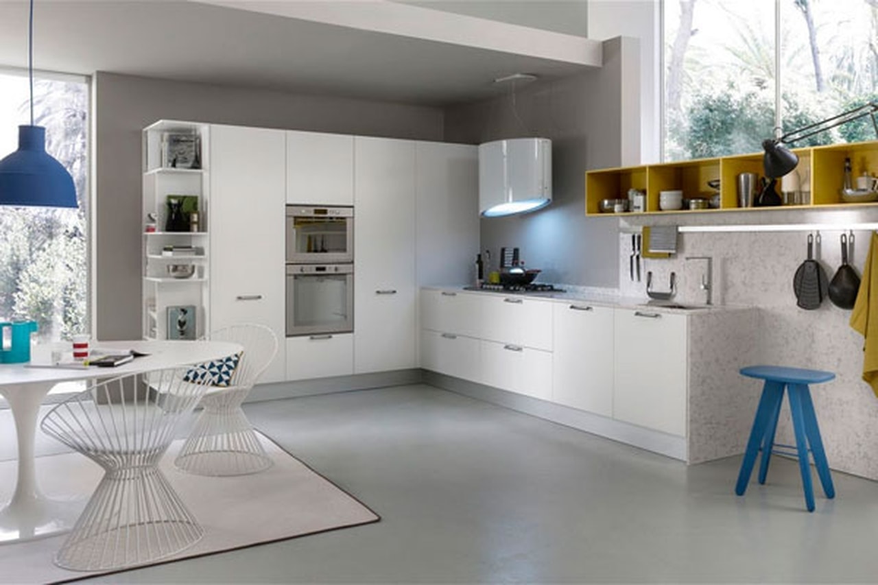 للازرق والأبيض انسجام جذاب سويا، لذا اذ كنتي ستختار اللون الأزرق عنوان لمطبخك يجب عليكي سيدتي دمجه بالأبيض ليصبح أكثر أناقة، يمكنك اختيار درجات الأزرق حسب مساحة المطبخ، فالازرق القاتح مناسب تماما للمطابخ صغيرة الحجم لأن الألوان الفاتحة تعكس الإضاءة بشكل جيد وتعطي إتساع، كما يمكنك ان تختاري اللون الأزرق الغامق في ديكورات المطابخ ذات المساحة الواسعة لأن الألوان الداكنة لا تعكس الإضاءة و ستؤثر بالسلب مع المساحات الضيقة.