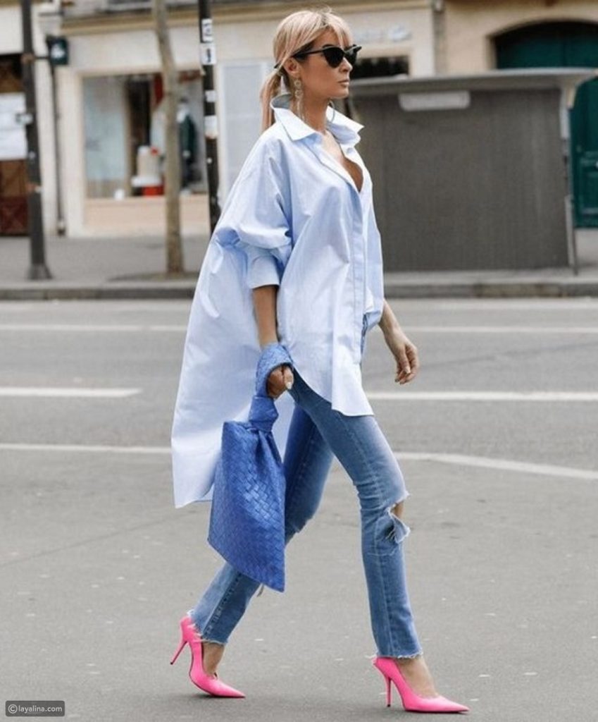 ربما لم تعد سرقة قميص صديقتك أمرًا ضروريًا، حيث أصبح قميص صديقتك كبير الحجم الآن أحد أحدث صيحات الموضة. هذه القمصان فضفاضة ومريحة، ويمكن ارتداؤها مع الجينز أو السراويل القصيرة أو حتى كفستان. أضيفي حزامًا لضبط الخصر للحصول على مظهر أكثر تحديدًا، أو ببساطة ارتديه فضفاضًا للحصول على مظهر أنيق دون عناء.
