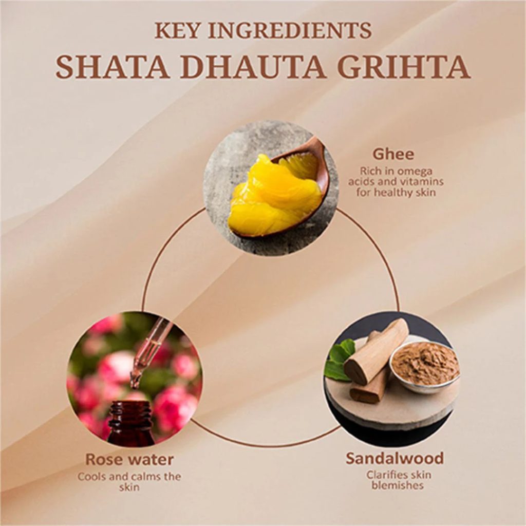 في نظام العلاج الهندي القديم “الأيورفيدا” تسمى تركيبة السمن المغسول 100 مرة شاتا داوتا غريتا. وهو سر جمال محفوظ جيدًا يرطب بشرتك بعمق.