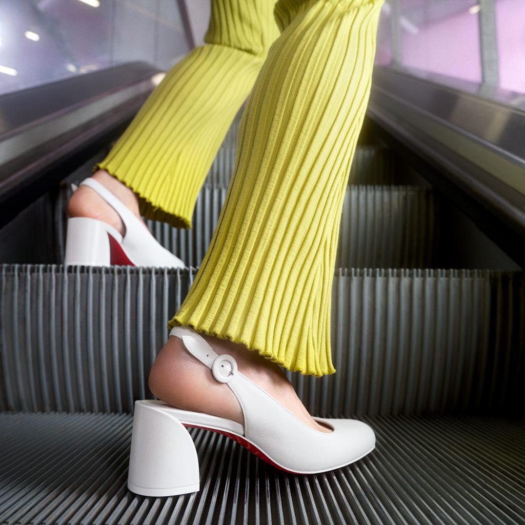 واحد من أكثر التصاميم المرغوبة، حقيبة “LOUBI54”، التي تتميز بتصميمها الأيقوني المركّب وشعار “CL”، بتصميم كروسبَدي وألوان متميزة مع حزام جلدي قابل للتعديل. مصنوعة من جلد الماعز فائق النعومة بلون أبيض سكري، وكذلك بالأزرق والأصفر الليموني المشرق، هذه التصاميم الكلاسيكية متوفرة أيضًا بأحذية مكررة، منها “BOUM BOUM Strass” المرصعة بالكريستال الملون أو “DAMIPUMP” أو “DAMIBOOT” من الجلود المتشابكة.