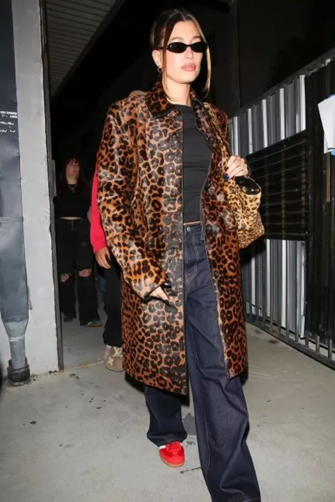 كما كانت أحدث إطلالة لهايلي بيبر في موعد غرامي مع جاستن بيبر أنيقة للغاية. فقد ارتدت قميصًا أسودًا بسيطًا مع معطف طويل بطبعات حيوانية أنيقة وبنطلون جينز أزرق غامق فضفاض. كذلك ومع حقيبة متناسقة وحذاء أحمر ونظارات شفافة، نجحت في إضفاء لمسة أنيقة ورائعة.
