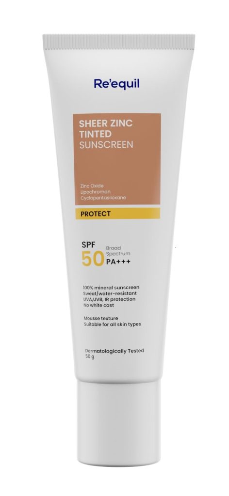 واقـي الشمس الشفاف الملون بالزنك من RE’EQUIL هو واقي شـمسي قائم على المعادن. تم تركيبه خصيصًا للبشرة الحساسة. كما قد يوفر هذا الواقي الشفاف الملون بالزنك حماية واسعة النطاق من أشعة الشمس. أيضًأ يحتوي هذا الـواقي من الشمس على عامل حماية من الشمس SPF 50 وتصنيف PA+++، ويعمل كحاجز مادي على الجلد يصد الأشعة فوق البنفسجية. كذلك بفضل قوامه الموس، يمكن لهذا الـواقي من الشمس أن يمتزج بسهولة مع الجلد، مما يوفر لمسة نهائية ندية وغير لزجة. كما تدعي العلامة التجارية أن هذا المنتج خالٍ من البارابين ولا يسبب انسداد المسام.