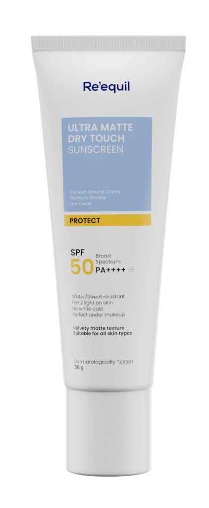 يعد واقي الشـمس RE’EQUIL Ultra Matte Dry Touch بتقديم أعلى مستوى من الحماية ضد أشعة UVA وUVB. تم تركيبه بعامل حماية من الشمس SPF 50 وتصنيف PA++++، ويمكن لهذا الـواقي من الشمس أن ينساب بسلاسة على الجلد دون أن يترك أي طبقة بيضاء. كما إنه واقي شمسي غير كوميدوغينيك يحتوي على مكونات مضادة للالتهابات ومهدئة قد تمنع التهيج. كذلك هذا الـواقي من الشمس فائق اللمعان خفيف الوزن ومرطب وخالٍ من البارابين.