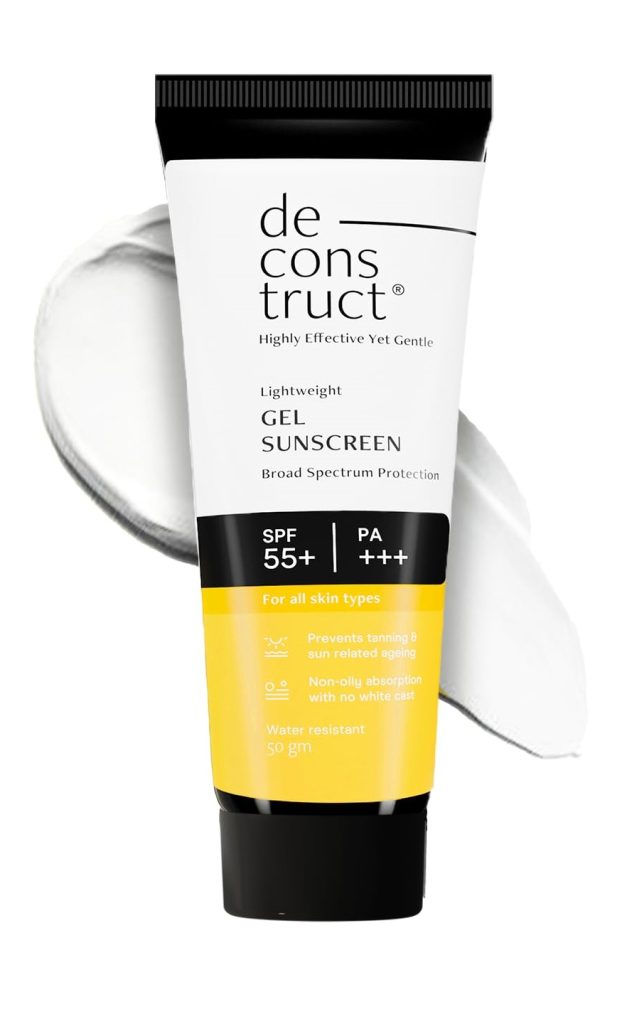 جل واقي من الشمس للوجه من Deconstruct بعامل حماية من الشمس 55+ وPa+++ | للبشرة الدهنية والمختلطة والعادية | واقي من الشمس واسع الطيف، لا يترك طبقة بيضاء، خفيف الوزن، غير دهني