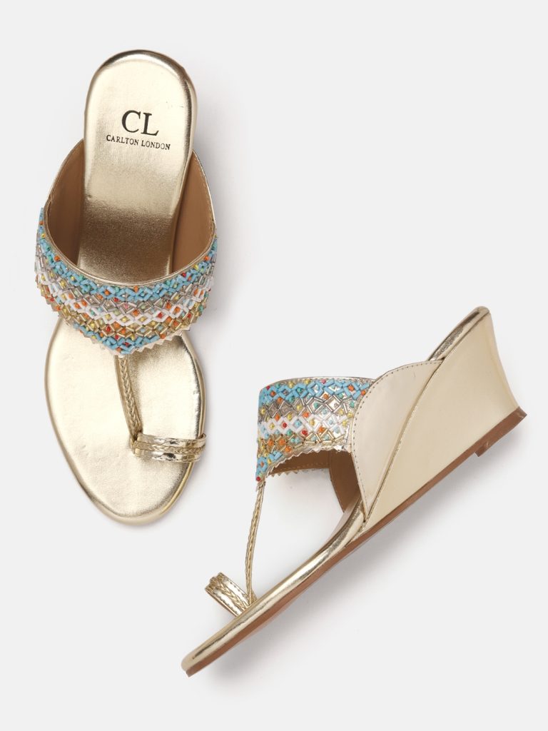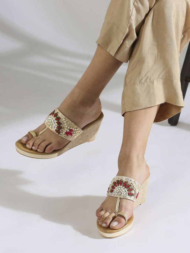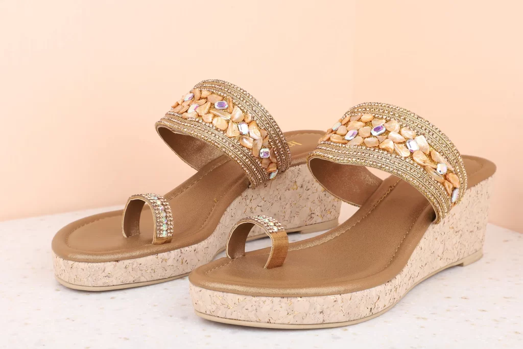 تعتبر الأحذية ذات الكعب الإسفيني المزخرفة مثل أحذية Mochi’s Ethnic Wedges وأحذية Lavie’s Bow Wedges مثالية للمناسبات الاحتفالية والتقليدية.