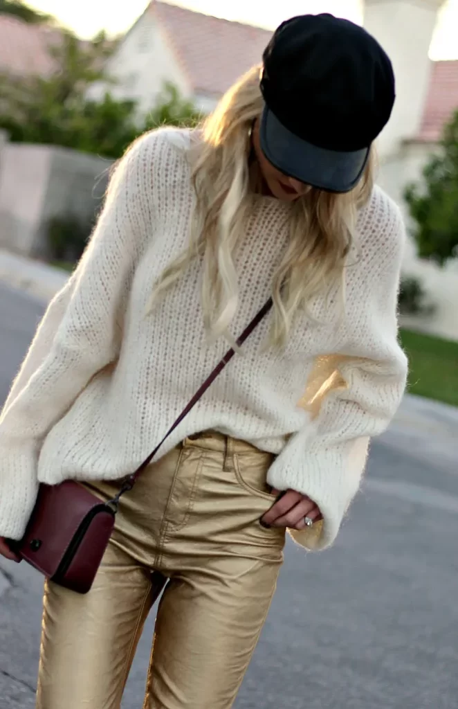 إذا اخترتِ ارتداء الجينز العصري، فإن ارتداء طبقات من الملابس سيكون أفضل صديق لك، خاصة مع انخفاض درجات الحرارة باستمرار. تخيلي قميصًا كبيرًا بأزرار، مشدودًا عند الخصر مع بنطالك الجينز الجديد – معطف طويل بلون محايد وحذاء طويل مشابه (أو أنيق إذا كنتِ تريدين الظهور بإطلالة أنيقة) سيفي بالغرض طوال اليوم. إذا كنتِ تريدين جذب كل الأنظار فورًا إلى بنطالك الجينز، فاستبدلي السترة الفضفاضة بأخرى ضيقة وضيقة باللون الأسود أو غيره من الألوان المبهجة ونسقيها مع معطف بلون متناسق.
