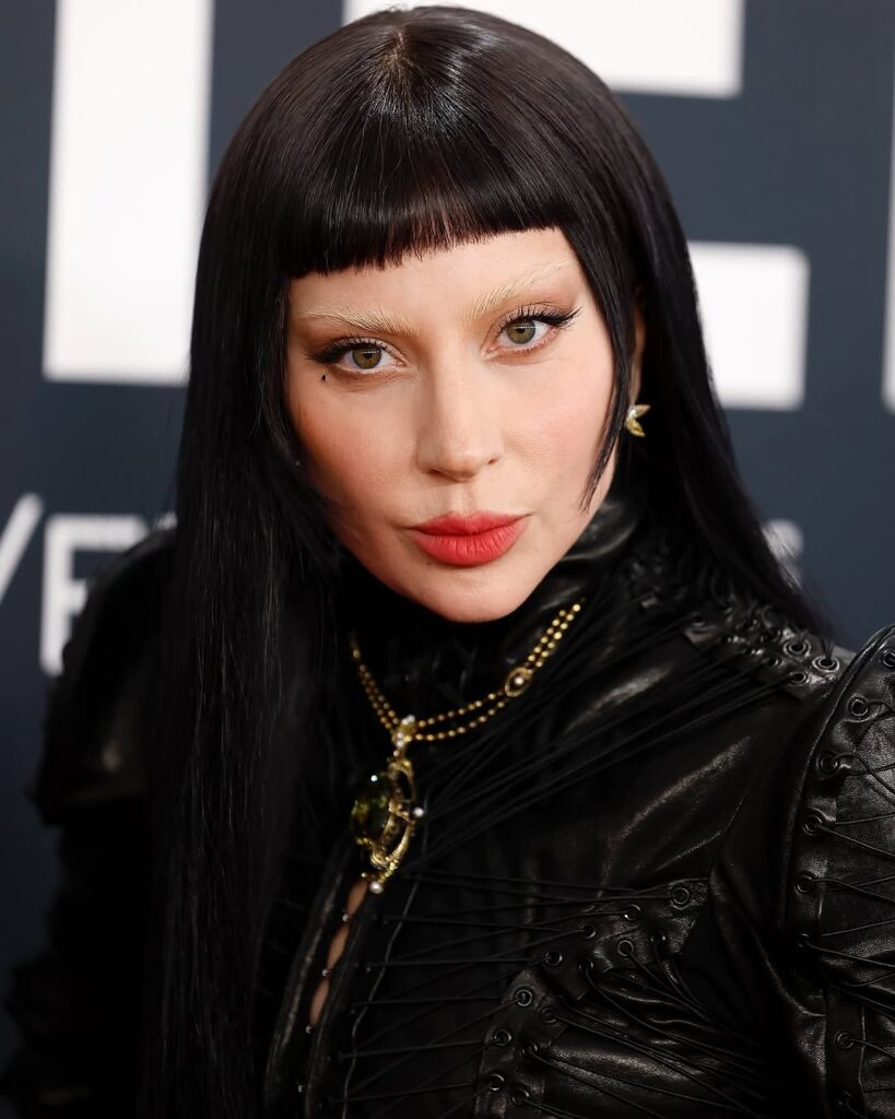 من ناحية أخرى، ظهرت ليدي غاغا بإطلالة أكثر حدة. فقد بدت جذابة للغاية بزي أسود يتألف من مشد وتنورة ضخمة، مع مانيكير أسود وكحل مجنح حاد. ومع ذلك، سرقت غرتها القصيرة – المقصوصة بشكل حاد – الأنظار.