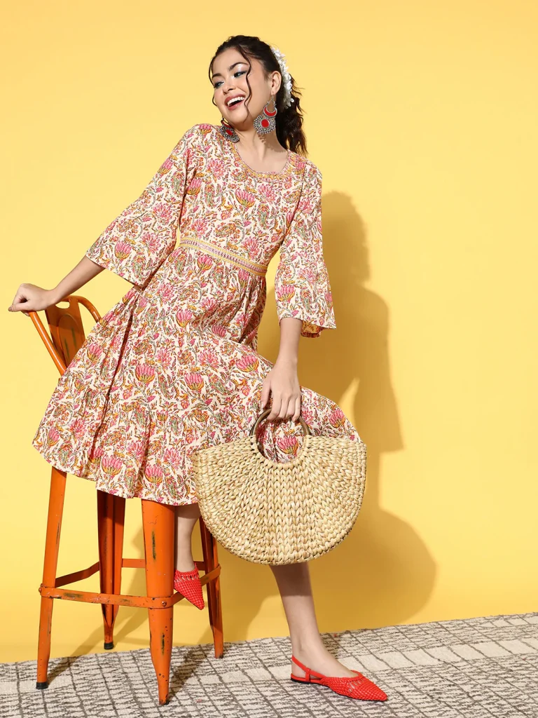 سانجريا – توب وتنورة بطبعة زهور باللونين البيج والأحمر للنساء