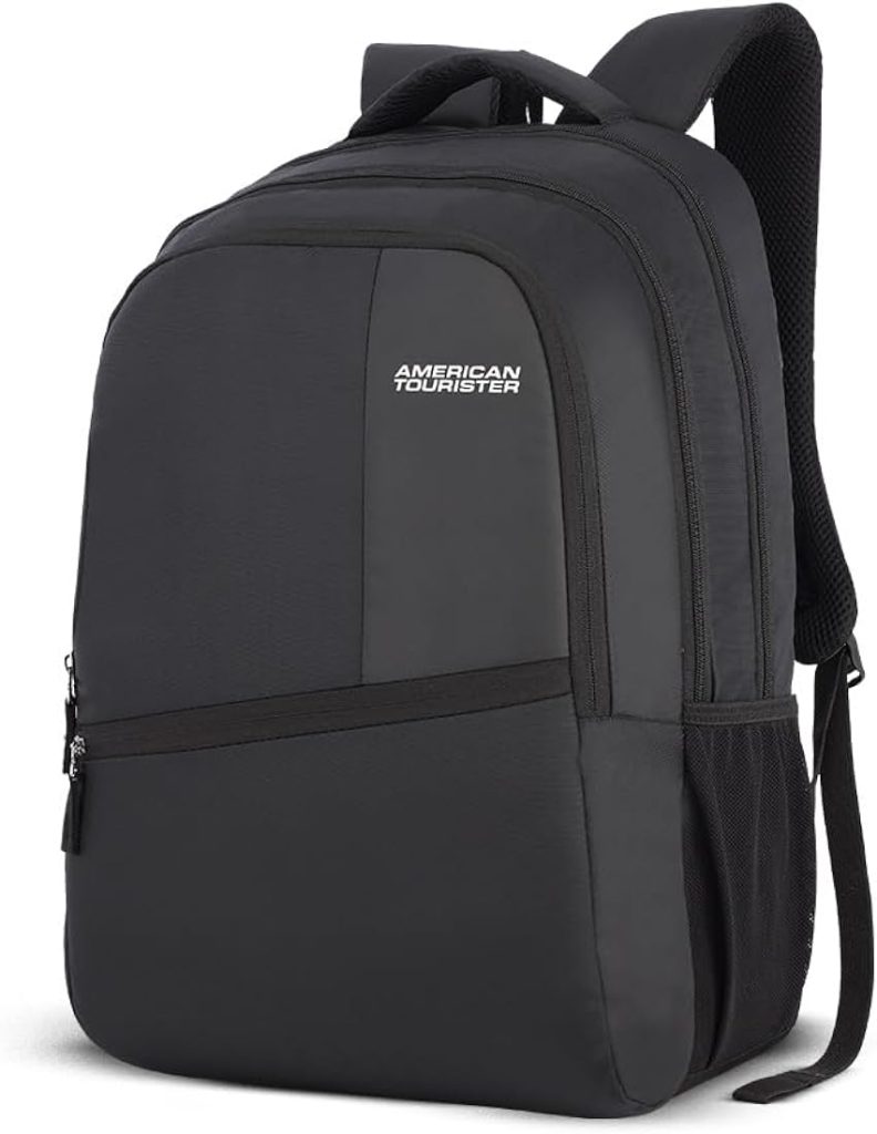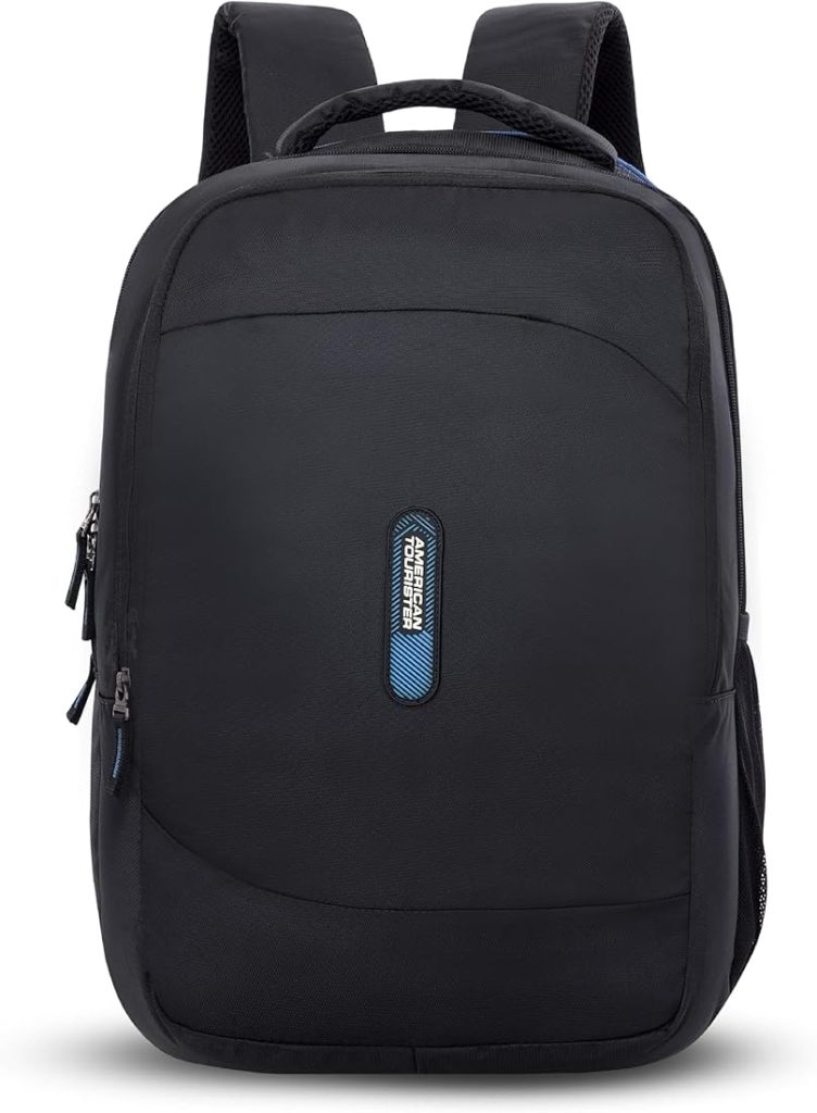 حقيبة ظهر كبيرة للكمبيوتر المحمول من أمريكان توريستر فالكس بسعة 28 لترًا مع جيب للزجاجات ومنظم أمامي – أسود