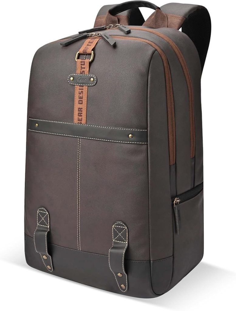 حقيبة ظهر Gear Classic 4 مقاس 19 بوصة/31 لترًا، مصنوعة من الجلد الصناعي المقاوم للسرقة، مقاومة للماء. مناسبة لأجهزة الكمبيوتر المحمول/الرحلات/الجامعات للرجال/النساء (لون أزرق مخضر-بني)