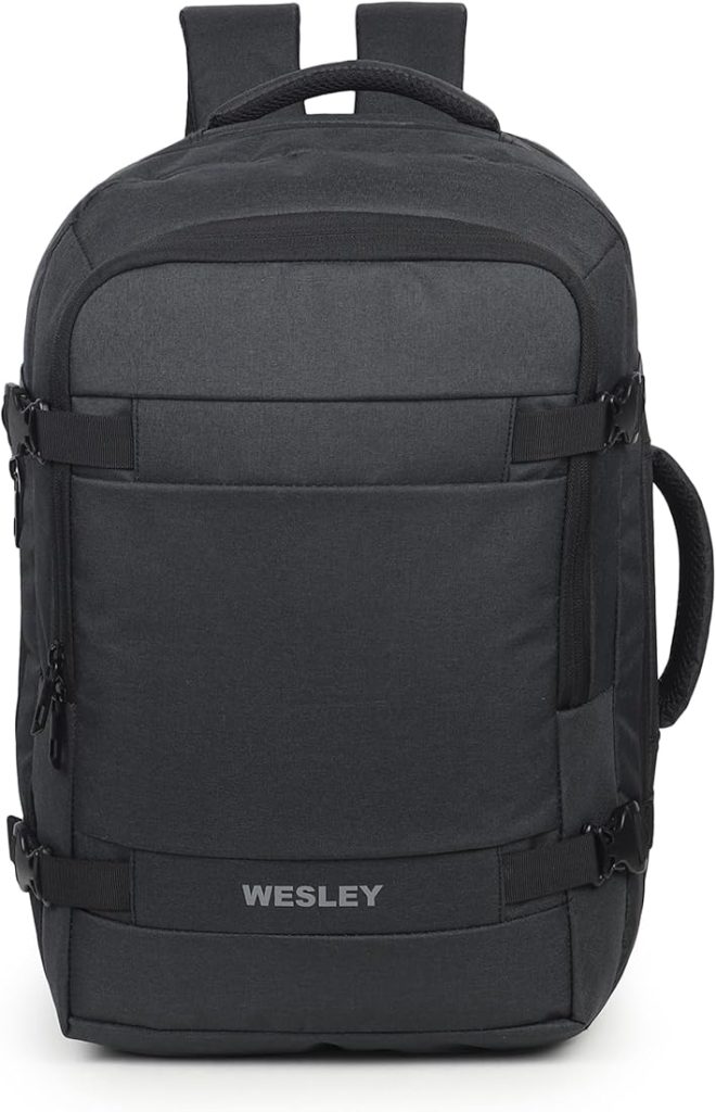 حقيبة ظهر ويسلي لوكسور للسفر والرحلات الليلية، قابلة للتوسيع، بسعة 45 لترًا، مناسبة لكابينة الطيران. مع حجرة كمبيوتر محمول مقاس 16 بوصة، ومضادة للسرقة، مناسبة للأعمال/السفر/عطلات نهاية الأسبوع/الجامعات، لون أسود فحمي