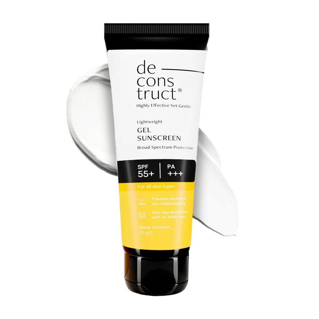 جل واقي من الشمس للوجه من Deconstruct بعامل حماية من الشمس 50+ وPA+++، واقي شمس جل للبشرة الدهنية والمختلطة والعادية، واقي شمس واسع الطيف، لا يترك علامات بيضاء، خفيف الوزن – 50 غرام.