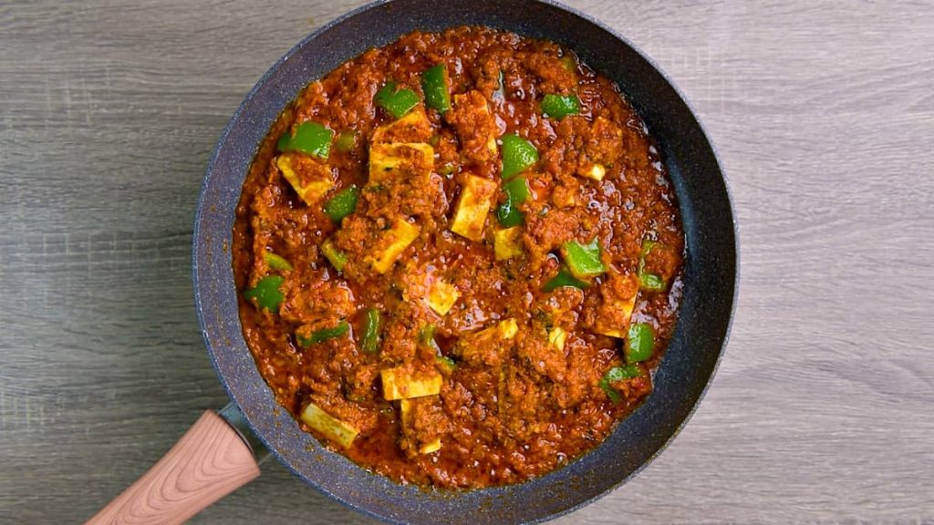 ابدئي بتقطيع كتلة البانير إلى مكعبات ثم افرم البصل والزنجبيل والثوم والفلفل الأخضر فرماً خشناً. ثم لتحضير التتبيلة، ضع الزبادي أو اللبن الرائب في وعاء وأضف الفلفل الأسود ومسحوق الكمون والملح. كذلك أضيفي مكعبات البانير واخلطها برفق. ولا تبالغي في هذه الخطوة حتى لا تتفتت مكعبات البانير الطرية. ثم بعد ذلك، في قدر، اغلي كوبًا من الماء وأضف البصل المفروم خشنًا والزنجبيل والثوم والفلفل الأخضر والكاجو. أيضًا اتركيه يغلي لمدة 3 إلى 4 دقائق ثم صفّي المكونات. ثم بمجرد أن يبرد قليلاً، امزجي حزمة الجبن المسلوقة مع 2 إلى 3 ملاعق كبيرة من الماء المغلي لعمل عجينة ناعمة. الآن سخّني ملعقة كبيرة من الزيت أو السمن البلدي في قدر واسكبي العجينة المخلوطة حديثًا. ثم قلّبي لمدة 6 دقائق حتى ينضج معجون البصل جيدًا ثم أضف البانير المتبل مع ربع كوب من الماء المغلي المتبقي. بعد ذلك غطِّي القدر واطبخ لمدة ٣ إلى ٤ دقائق حتى ينضج المرق تمامًا. ثم بعد ذلك، عدّل الملح إذا لزم الأمر، ورشّ القليل من الكاسوري ميثي ومسحوق الهيل فوقه. ثم اخلطي المكونات جيدًا وقدّميها مع الروتي أو الأرز أو حتى الكينوا.