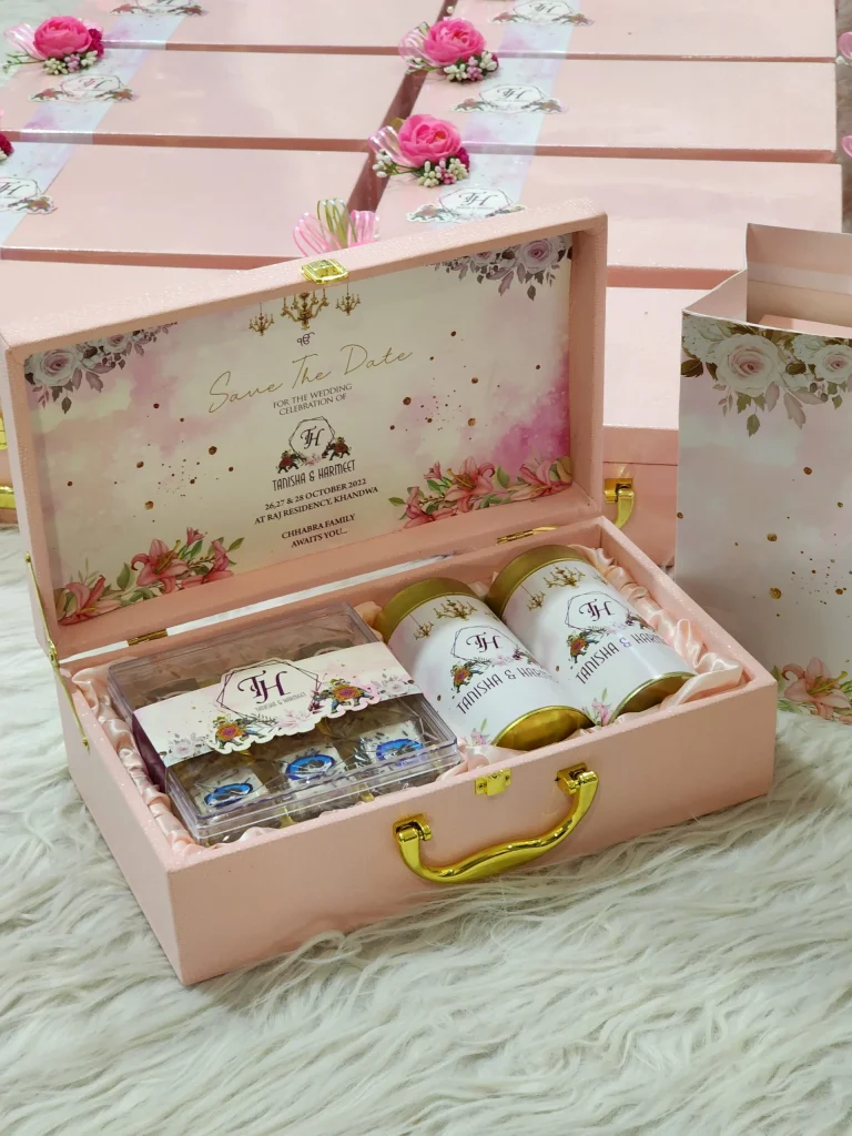 دعوات زفاف فاخرة معبأة في صناديق، تعدّ بمثابة تذكارات