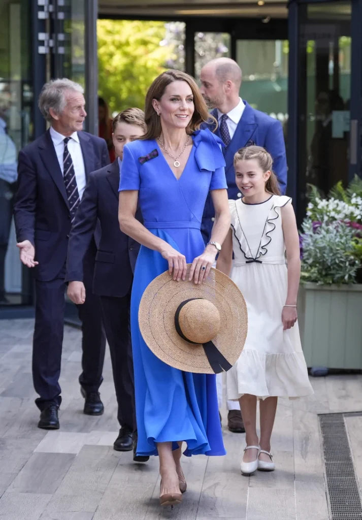 في 13 يوليو، عادت كيت إلى المحكمة المركزية برفقة الأمير ويليام واثنين من أبنائها الثلاثة، الأمير جورج والأميرة شارلوت، مرتديةً فستانًا أزرق ملكيًا من روكساندا، وحذاءً بكعب عالٍ من رالف لورين، وقبعة شمس من القش من إل كيه بينيت، وحقيبة توت من أنيا هندمارش. وارتدت كيت مرة أخرى أقراطًا من كارتييه ترينيتي وخاتمًا من الياقوت الأزرق، محافظةً على أناقة المجوهرات في كلتا الإطلالتين.