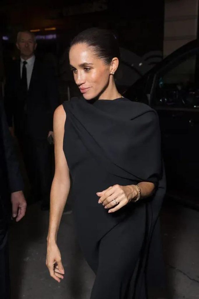 كما تجسّد هذه الأمسية تتويجًا لسنوات طويلة من الفن والصداقة، ويتجلى ذلك في دعمها لمرحلة إبداعه الجديدة في بالنسياغا. كذلك اختارت ميغان إطلالةً أنيقةً بيضاء منسقةً، تكوّنت من بنطال وقميص بأزرار وكاب شال متناسق. ثم غيّرت إطلالتها إلى فستان أسود رائع بفتحة رقبة غير متماثلة لحضور حفلٍ ما بعد عرض بالنسياغا.