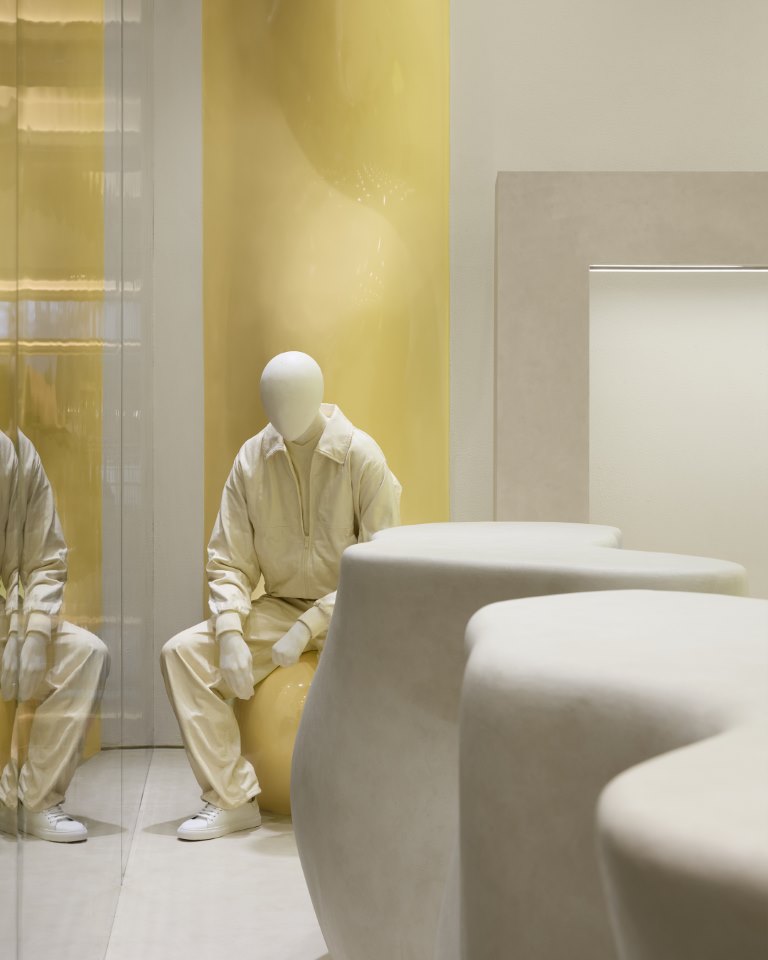 كما يشهد المتجر على إنجازٍ آخر في تاريخ العلامة، مع إطلاق أول منحوتة على هيئة مانيكان بالتعاون مع الشريك الإبداعي طويل الأمد Jon Buck، في إطار تعاونٍ فني متواصل مع Jens Werner. وصُمم العمل بالاعتماد على عملية صبّ قالب يحاكي الجسم البشري، لينتج قطعة فنية متفرّدة تتخطى مفهوم عناصر العرض البصري، ما يعكس رؤية العلامة القائمة على دمج الشكل والوظيفة وفق فلسفة فنية تعتمد على المرح والابتكار.