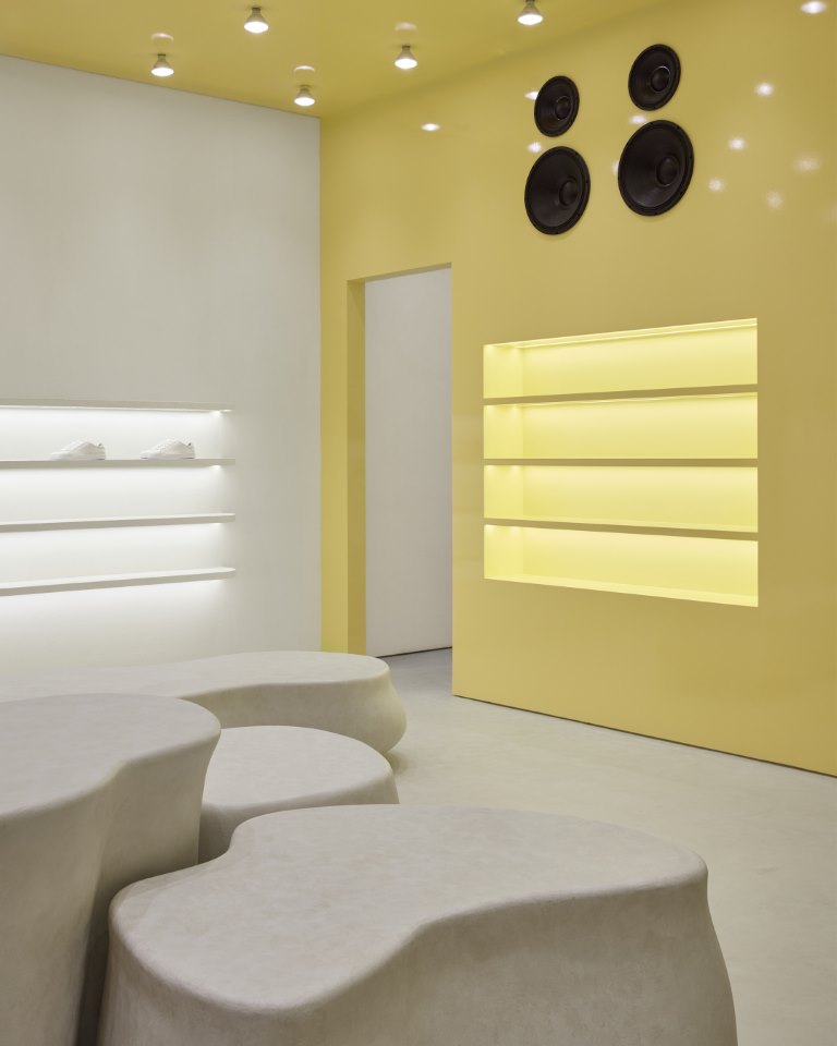 وتُعرض الأحذية الرياضية بأسلوبٍ يحاكي المعارض الفنية على منصات مصممة وفق أشكالٍ بسيطة وعضوية، ما يوفّر طريقة عرضٍ واضحة ومثالية لتشكيلة منتجات العلامة المتجدّدة باستمرار. كما يوفّر المتجر تشكيلةً من تصاميم العلامة الأيقونية، مثل أحذية Clean 90 وArea وDice، بالإضافة إلى تصاميم جديدة، مثل حذائيّ Eris وDaze Runner. ويقدّم المتجر أيضاً مجموعةً من التشكيلات الموسمية للأزياء الجاهزة والإكسسوارات.