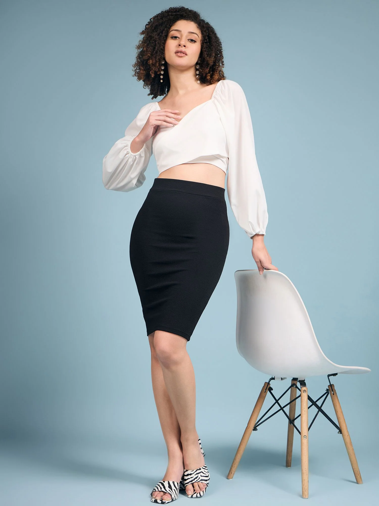 تنورة نسائية ضيقة متوسطة الطول بخصر مطاطي