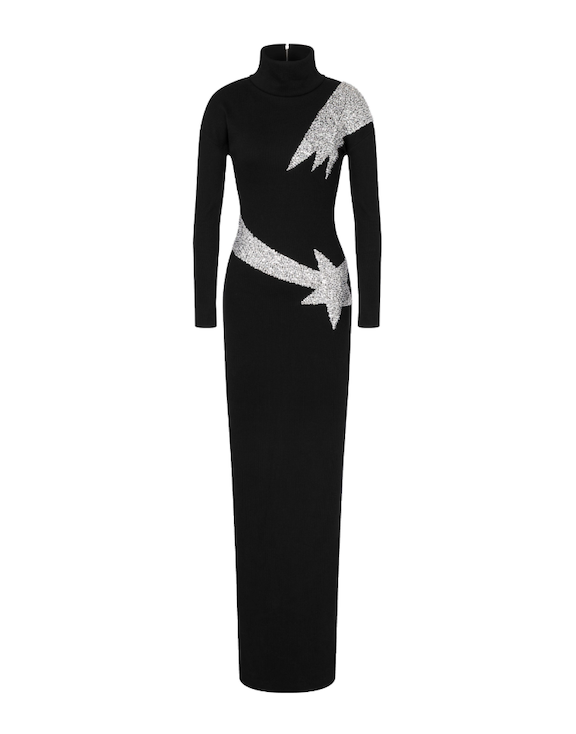 بمزيجها المميّز من الذكاء والرقي، تُعيد Moschino تعريف أزياء الحفلات بروحٍ عصرية. تُعزَّز القصّات السوداء الانسيابية بزخارف دقيقة وتفاصيل نحتية، لتمنح الإطلالة توازناً بين الكلاسيكية والجرأة المرحة.