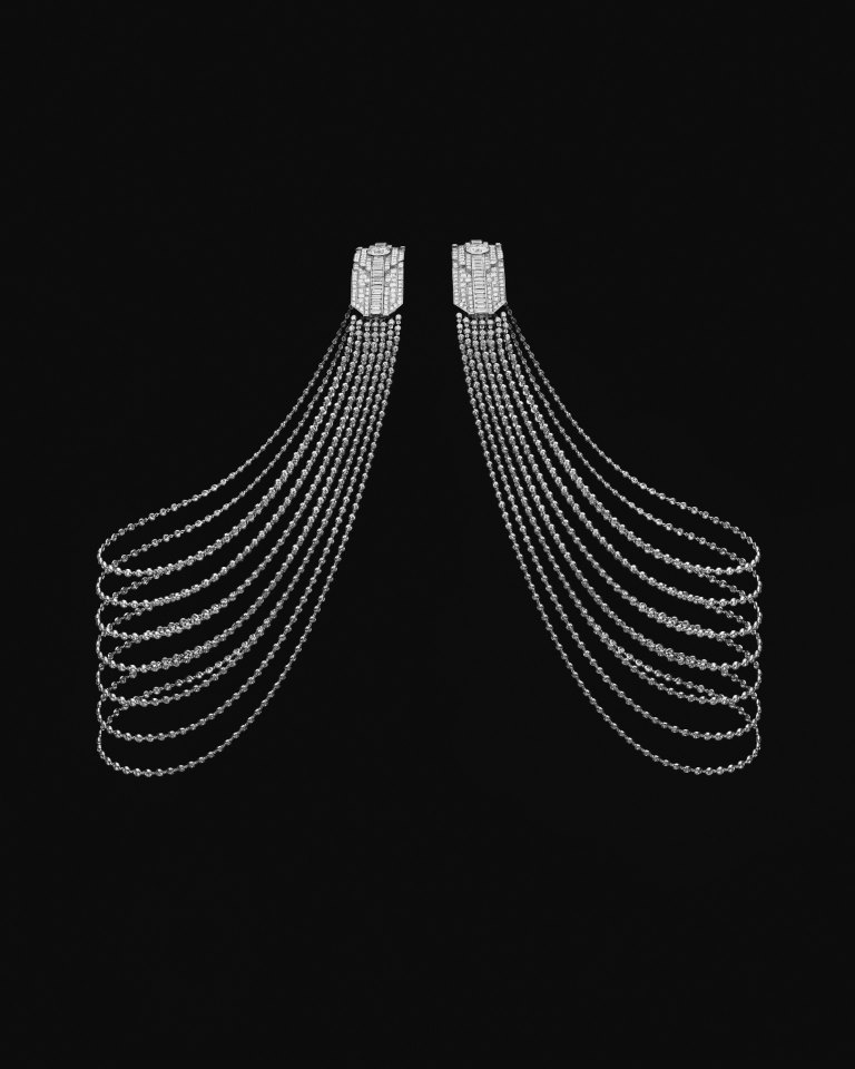 لم ينسَ فريديريك بوشرون جذوره كابن لتاجر أقمشة؛ فقد نقل نعومة الحرير ومرونة الدانتيل إلى صلب المعادن الثمينة. في المجموعة الجديدة، جسدت كلير شوان هذا المفهوم بقطعة فنية يمكن ارتداؤها بـ ست طرق مختلفة.