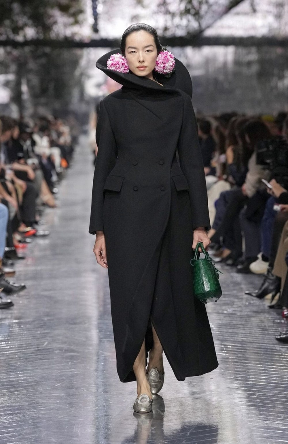 كما كانت حقائب «ليدي ديور»، بأنماطها النادرة والأحذية الذهبية، مصدرَ قوى في إطلالات العارضات على خشبة العرض.