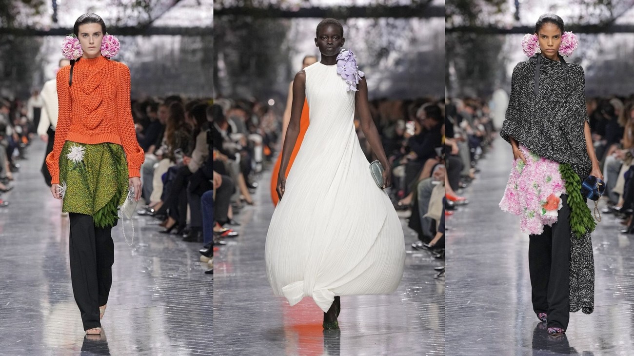 وافتتح العرض بفساتين مطوية ذات الحواف المنتفخة (Bulbous) من أعمال الفنانة ماغدالين أودوندو، محولاً الطين إلى حرير، بالإضافة إلى معاطف الساعة الرملية، والعبايات المغطاة، المرصعة بآلاف بتلات النسيج الدقيق، إلى جانب قمم دوامة شفافة مصممة بدقة، مثل: اللوالب ذات الأصداف البحرية، مسلطاً الضوء التقني المهم، وهو تأثير «جناح الفراشة»، الذي تحقق من خلال المقاييس الريشية.