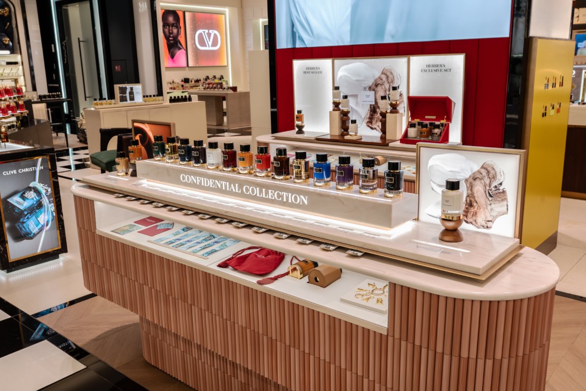 يقع الكاونتر في وسط الطابق، ويعرض عالم كارولينا هيريرا بيوتي بالكامل. يمكن للعملاء استكشاف مجموعات العطور المتخصصة، بما في ذلك مجموعة Herrera Confidential الحصري؛ والمجموعة الخاصة المرموقة للدار إلى جانب مجموعاتها الأكثر مبيعًا مثل Good Girl.