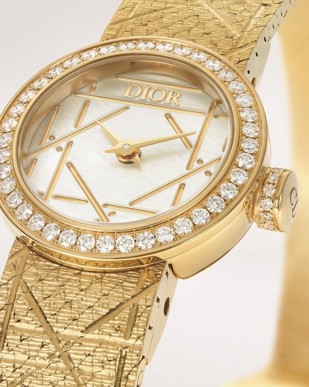 تقدم هذه الساعة قراءة مرِحة ومعاصرة لرموز «ديور» الأيقونية، وعلى رأسها نمط «كاناج» الشهير، هذا النمط الذي ارتبط تاريخياً، بإرث «الدار»، وعالمها البصري، يتحول إلى عنصر رسومي نابض، يزين القرص، ويمنحه بُعداً هندسياً أنيقاً، ويأتي قرص عرق اللؤلؤ (المتقزّح)؛ ليضفي حياة وحركة على هذا التجريد، عاكساً الضوء بطريقة تغيّر ملامح الساعة مع كل حركة للمعصم، وتحمل «La D de Dior» طابعاً مزدوجاً؛ فهي من جهة رمز زينة شخصي، يحمل دلالة شخصية. ومن جهة أخرى قطعة مرغوبة لهواة الجمع، تهمس بالفخامة.