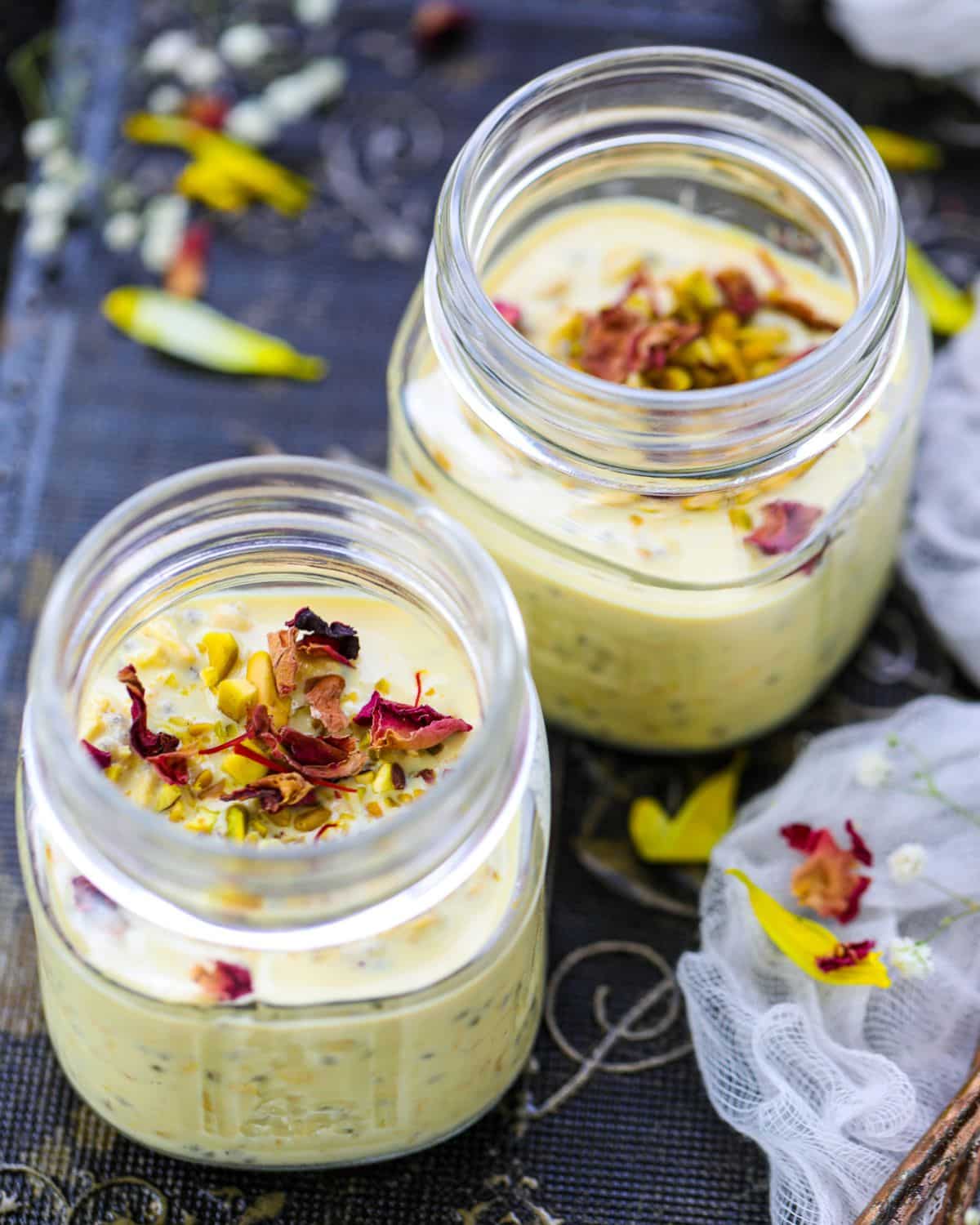 ثم أطفئي النار وأضف ماء الورد وبذور الشيا.