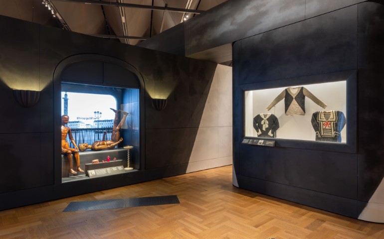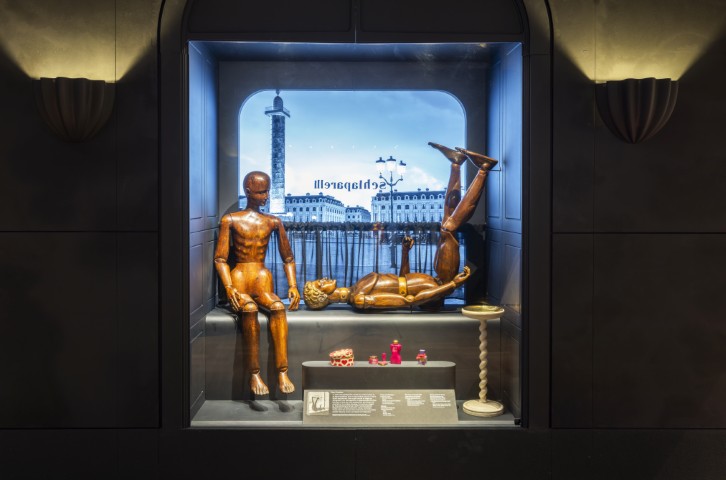 سكياباريللي: حين تتجلّى الموضة لتصبح فناً (Schiaparelli: Fashion Becomes Art) يضمّ أكثر من 400 قطعة، تشمل 100 إطلالة و50 عملًا فنيًا، إلى جانب الإكسسوارات، المجوهرات، اللوحات، الصور، قطع الأثاث، العطور، والمواد الأرشيفية. من أبرز المعروضات: فستان «الهيكل العظمي» لعام 1938 — النسخة الوحيدة المعروفة الباقية حتى اليوم (وهو جزء من المجموعة الدائمة لمتحف فيكتوريا وألبرت) — إلى جانب فستان «الدموع» من العام نفسه، بالإضافة إلى القبعة الأيقونية التي تستحضر شكل حذاء مقلوب؛ وجميعها جاءت ثمرة تعاونها مع الفنان سلفادور دالي. كما يضم المعرض أعمالًا لفنانين كبار، من بينهم بابلو بيكاسو، جان كوكتو، مان راي، وإيلين آغار، فضلًا عن عدد من تصاميم سكياباريللي المخصّصة لعالمَي المسرح والسينما. يُختتم المعرض بلمسة معاصرة آسرة، تتجلّى فيها إبداعات دانيال روزبيري — التي تألّقت بها نجمات عالميات مثل أريانا غراندي ودوا ليبا — في خاتمة درامية تشكل حوارًا بصريًا متقنًا بين إرث الدار ورؤيتها الراهنة.