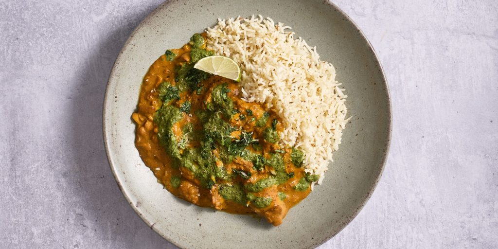 كاري دجاج خفيف مع أرز بالكمون