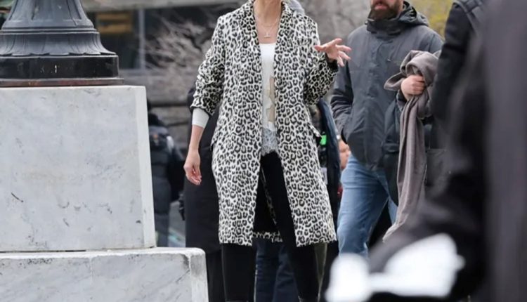 أما الإطلالة الثانية، جاءت أكثر جرأة، وقد اختارت طوقاً بنقشة الفهد (Leopard Print) مع كعكة شعر عفوية، مدمجة مع جاكيت جلد بني مرقّع، وحذاء بكعب عالٍ، وهو تناقض فني يخدم شخصيتها في العمل، ويختلف تماماً عن أسلوب دياز الواقعي، الذي يميل عادةً لقصة «اللوب»، المسحوبة بفرق جانبي ناعم.